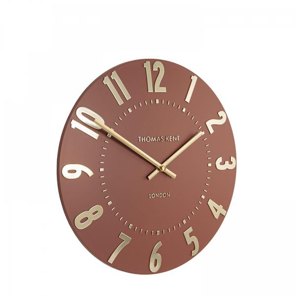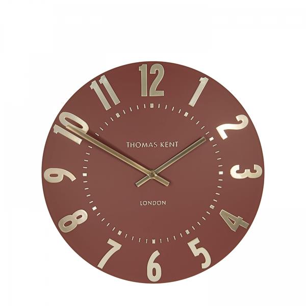 A rich shade of Auburn flaunts itself across our Mulberry collection. The impressive tone holds a warm personality. New for 2024, the simple, open-faced, curvaceous styling invites foiled metallic numerals, ticks, and hands to add a glamourous spirit to the distinct 12" clock face. The overall design complements a modern home searching for a splash of on-trend colour.