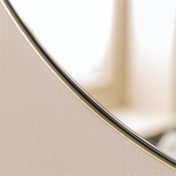 Featuring a slim elegant champagne metal frame, this round mirror is the perfect way to update your home. The contemporary shape and industrial inspired frame create a stunning statement piece.