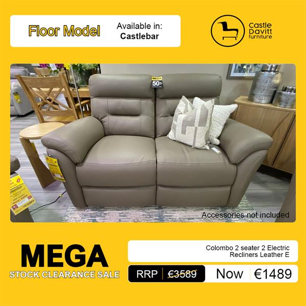 Colombo 2 Seater 2 Electric Recliners Leather E