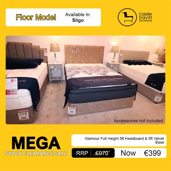 Glamour Full Height 5Ft Headboard & 5Ft Velvet Base